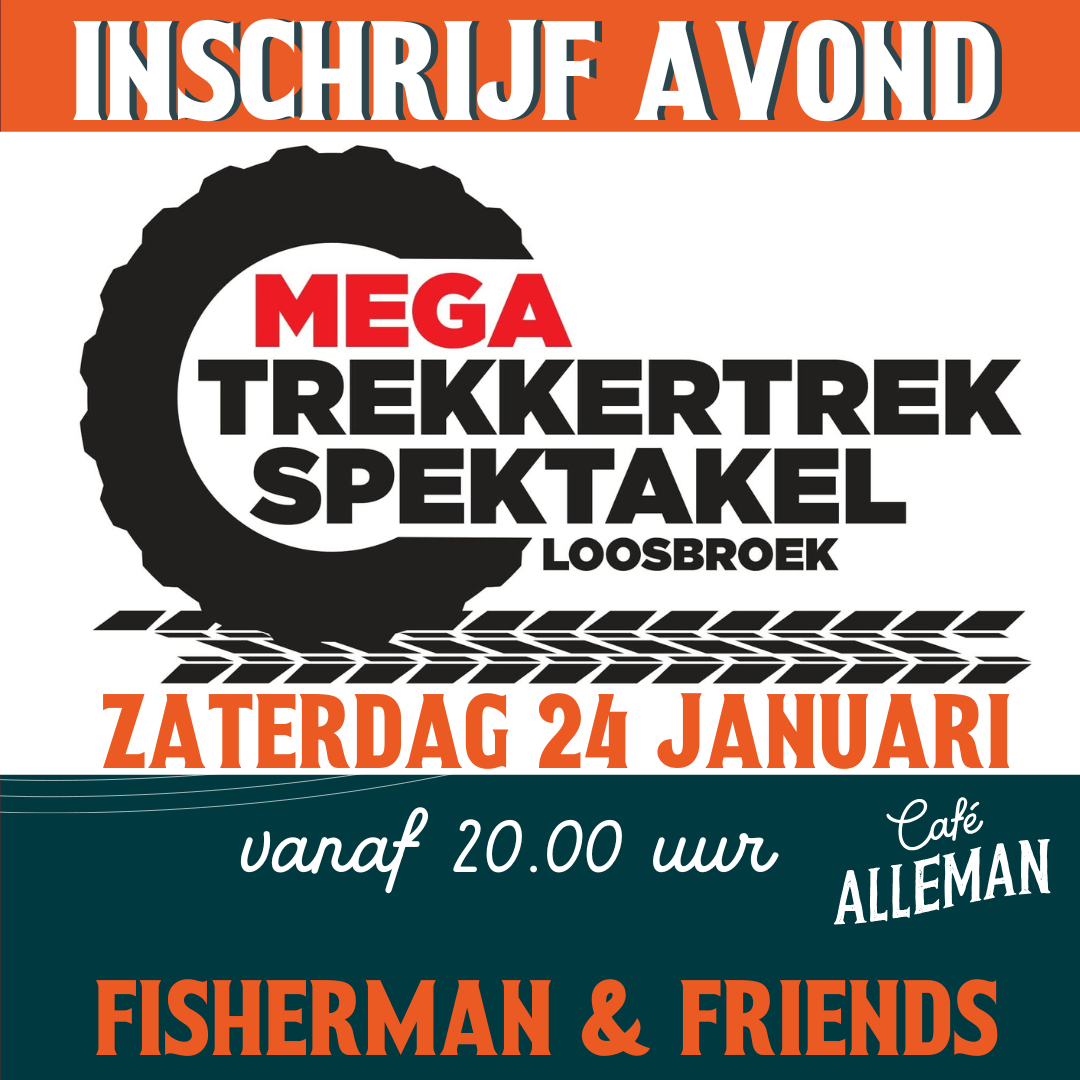 januari 24, 2026 Inschrijfavond Trekkertrek | Café Alleman | Fischerman & Friends | Zaterdag | 20:30 uur | Café Alleman Molenhoeven 45, Loosbroek, Netherlands