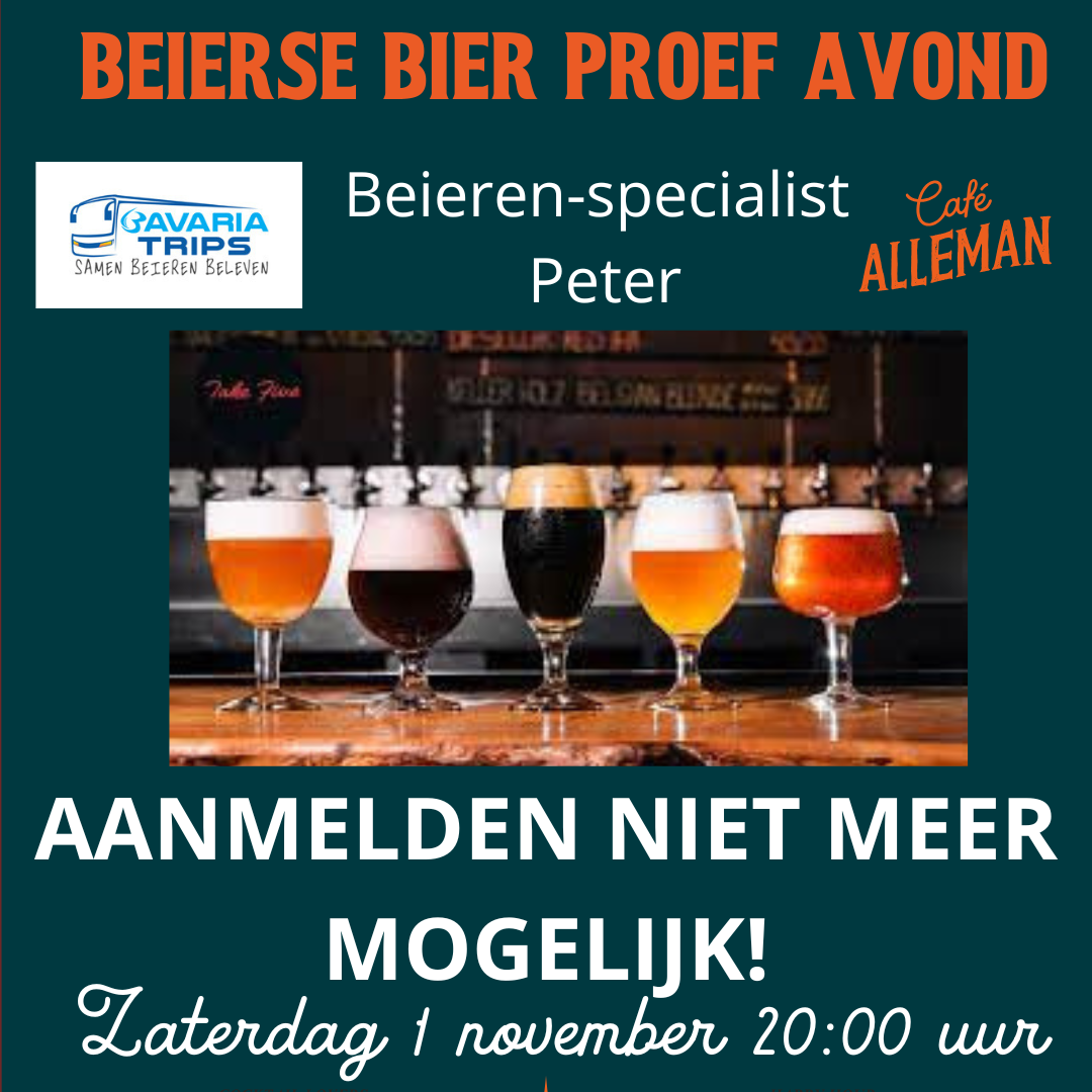 november 1 Beierse Bieravond UITVERKOCHT | Café Alleman | Bavaria Trips | Zaterdag | 20:00 uur Café Alleman Molenhoeven 45, Loosbroek, Netherlands