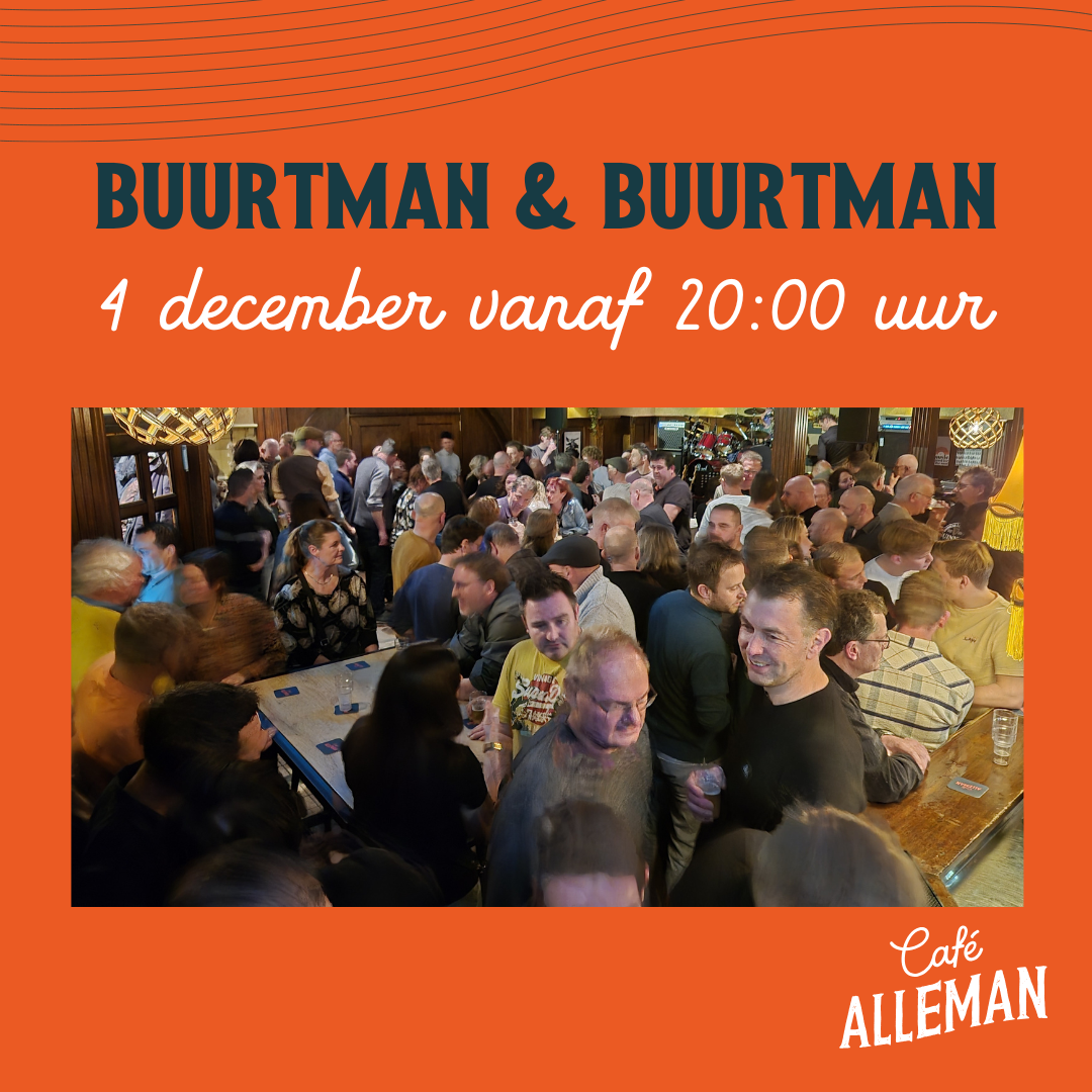 december 4 Buurtman & Buurtman | Café Alleman | Donderdag | 20:00 uur Café Alleman Molenhoeven 45, Loosbroek, Netherlands