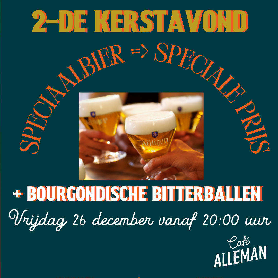 december 26 Speciaal bier | Café Alleman | Speciale prijs | 2de Kerstavond | 20:00 uur Café Alleman Molenhoeven 45, Loosbroek, Netherlands