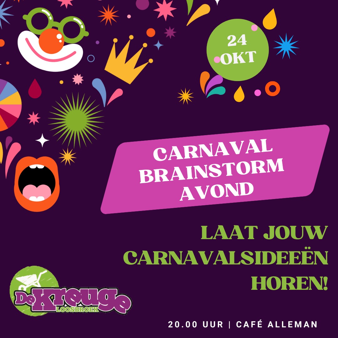 oktober 24 Carnaval Brainstormavond | Café Alleman | De Kreuge | Vrijdag | 20:00 uur Café Alleman Molenhoeven 45, Loosbroek, Netherlands